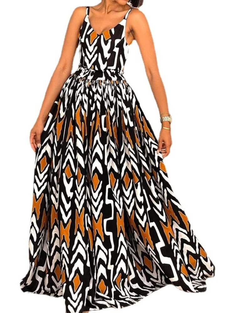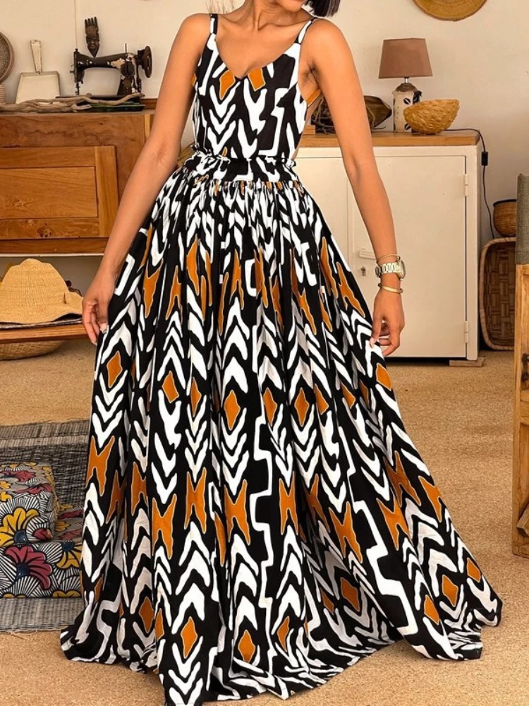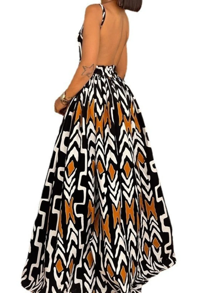 New York’s Fashion Elegant Summer Maxi Dress Halter Neck Dress Backless Spaghetti Strap Flowy Long Gown for Women Beach Holiday Outfit