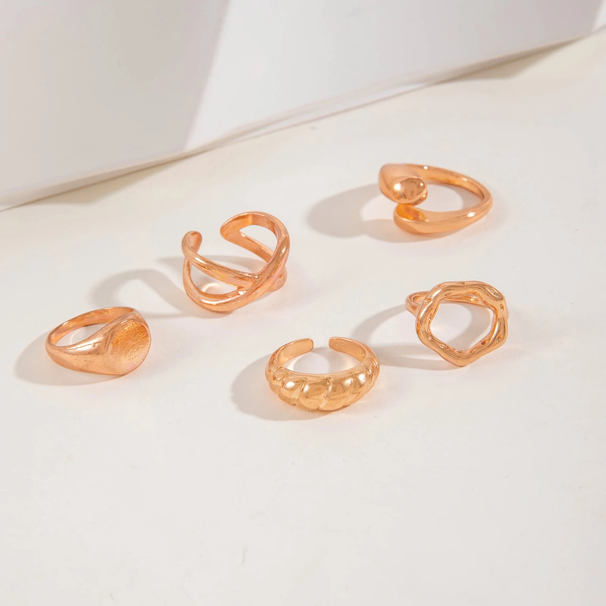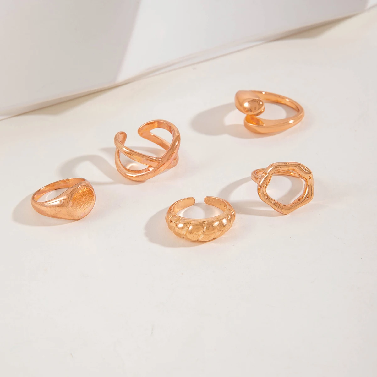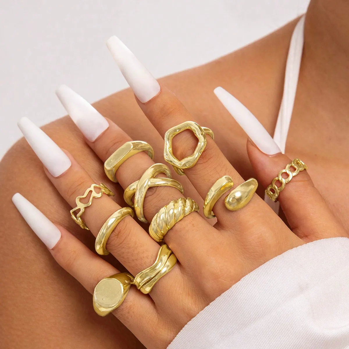 New York’s Fashion Exaggerated Punk Gold Silver Color Smooth Geometric Open Rings Set For Women Irregular Chunky Ring Jewelry Gift