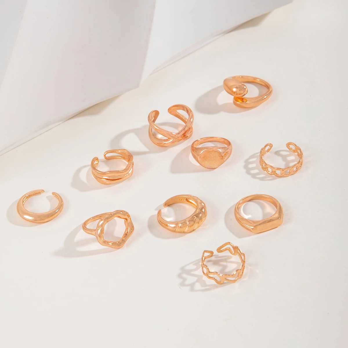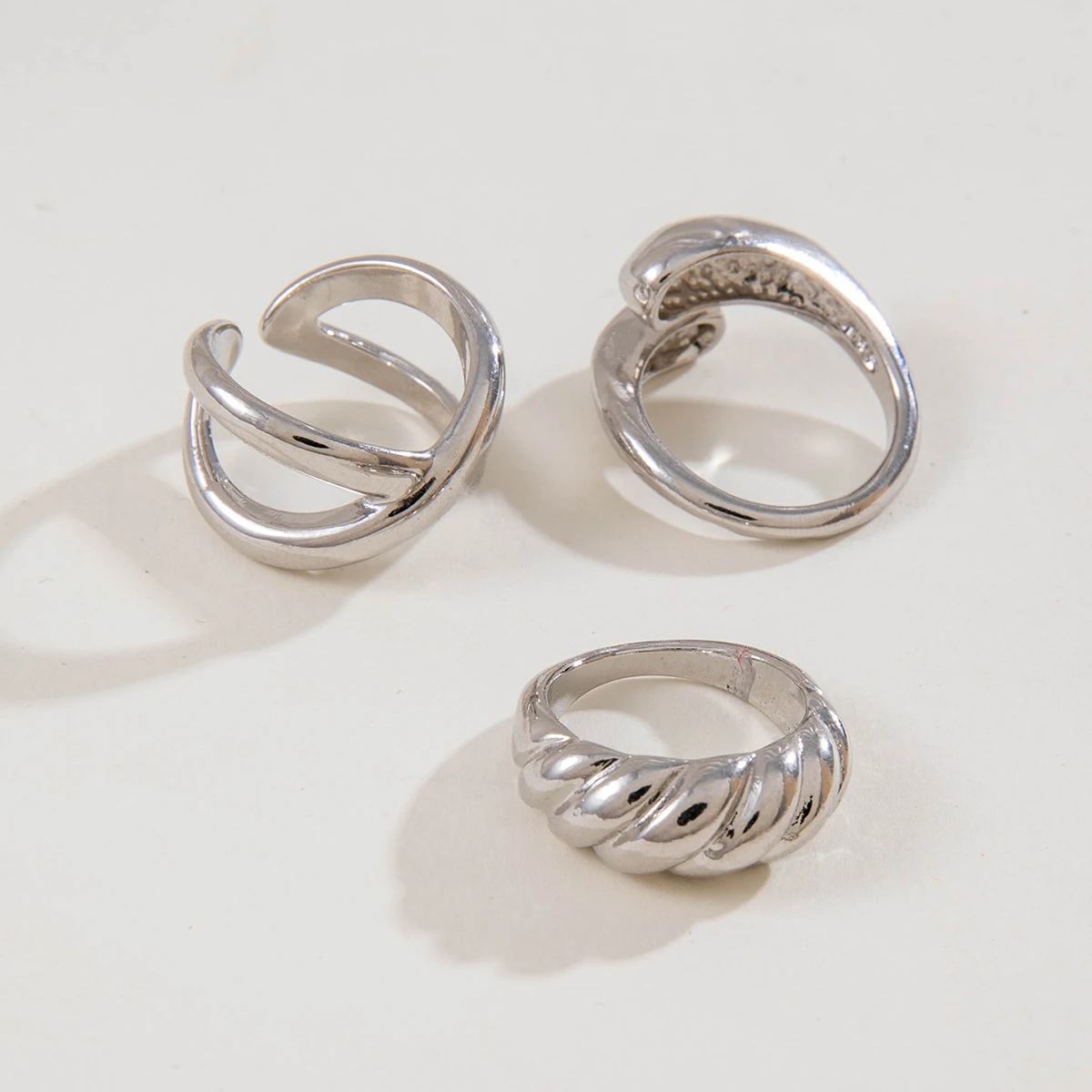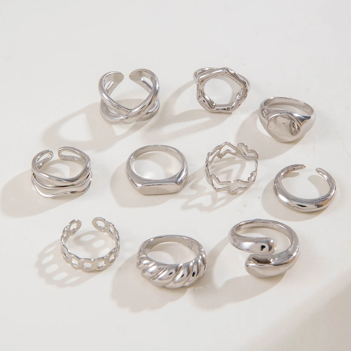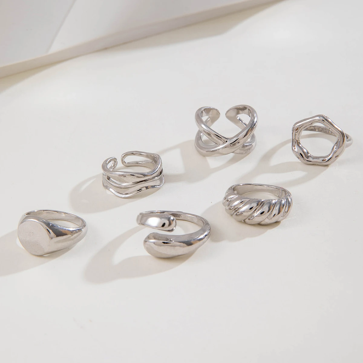 New York’s Fashion Exaggerated Punk Gold Silver Color Smooth Geometric Open Rings Set For Women Irregular Chunky Ring Jewelry Gift
