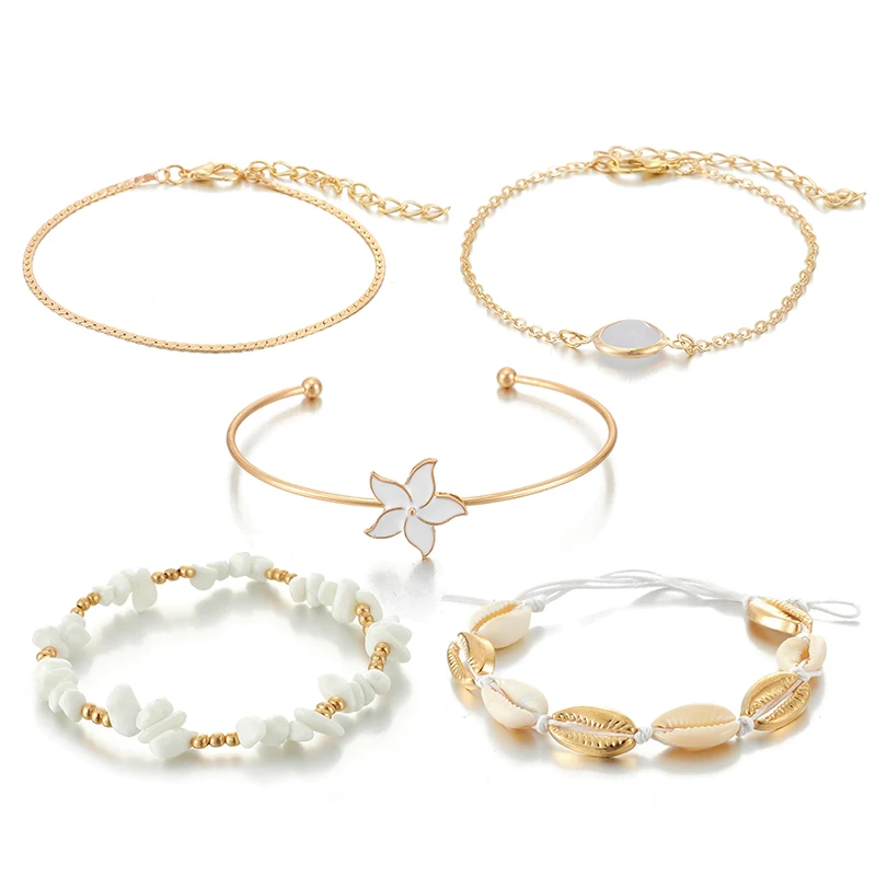New York’s Fashion Natutal Stone Bead Bracelets for Women White Flowers Summer Shell Opeal Chain Bangle Sea Jewelry Wholesale-gift