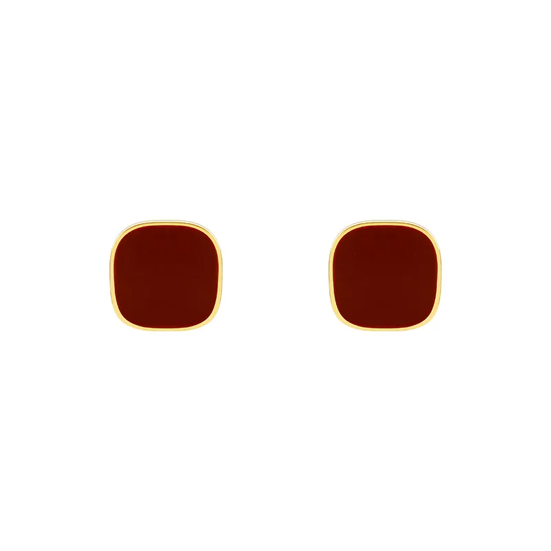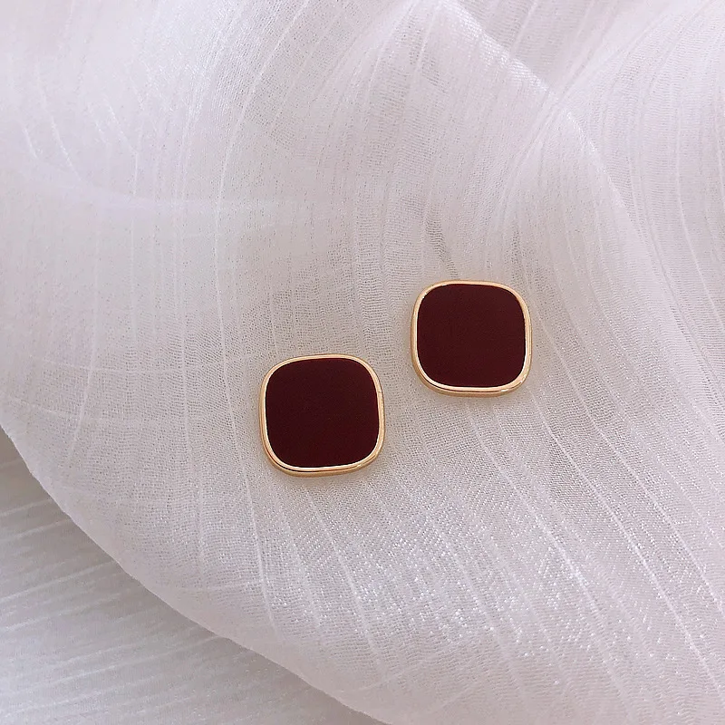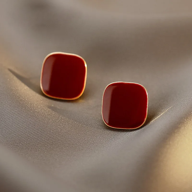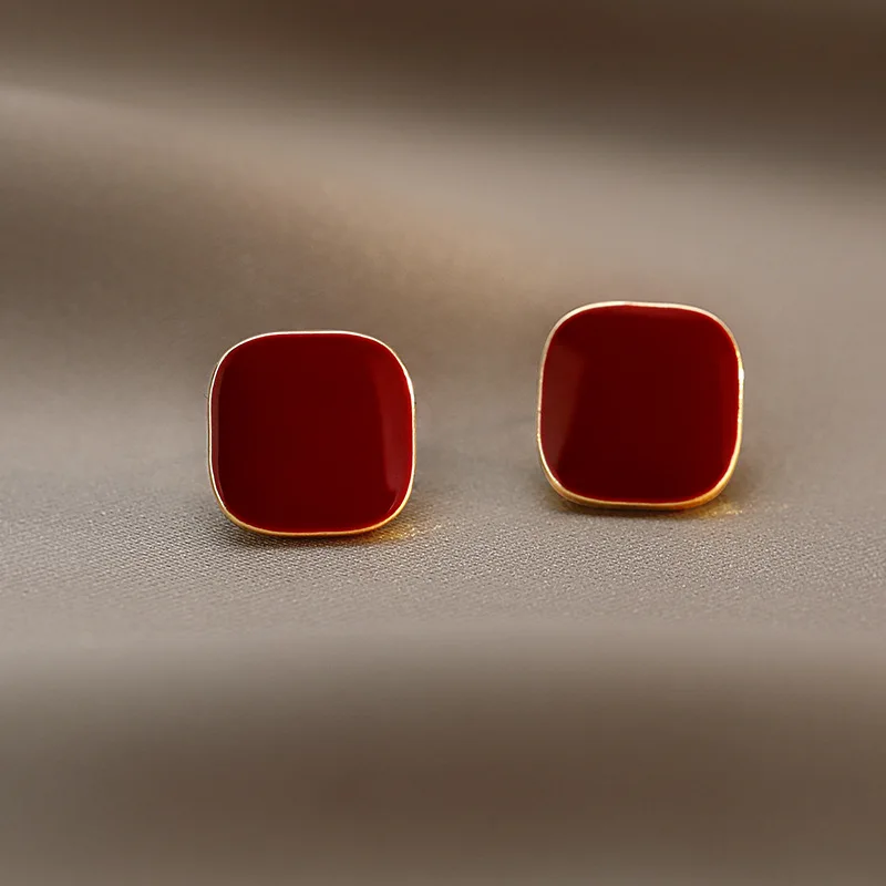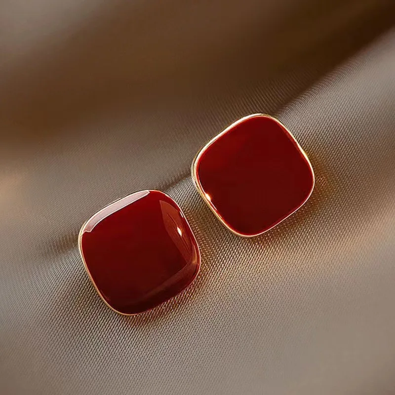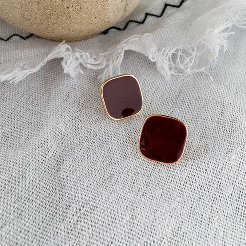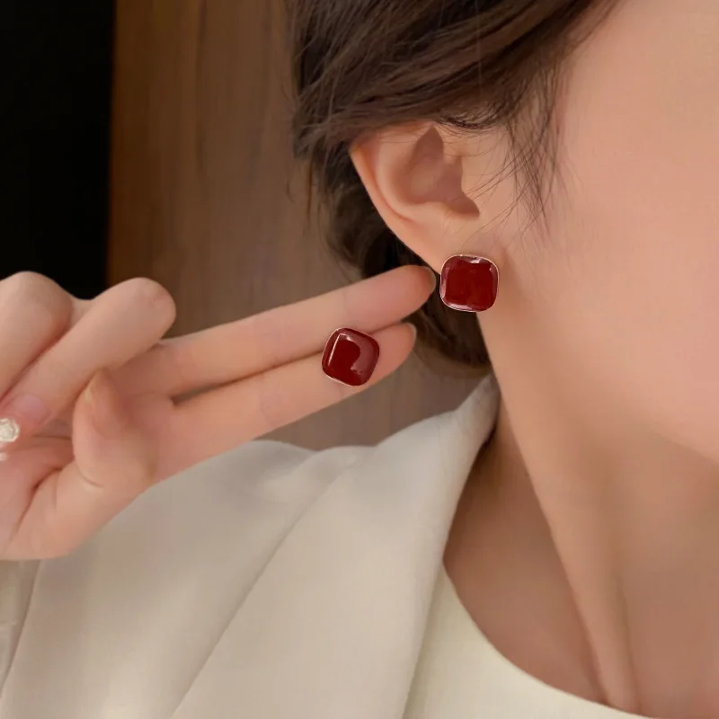 New York’s Fashion Retro Wine Red Square Stud Earring for Women Korean Simple Geometry Temperament Jewelry Christmas Girlfriend Gift