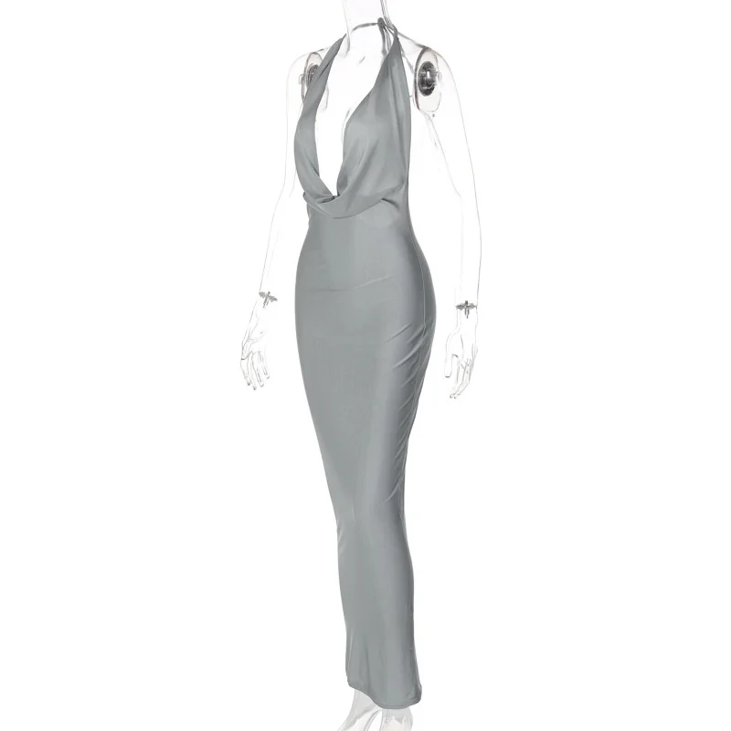 New York’s Fashion Satin Deep V Neck Sleeveless Long Dress For Women Robe Winter New Sleeveless Backless Halter Bodycon Maxi Dress