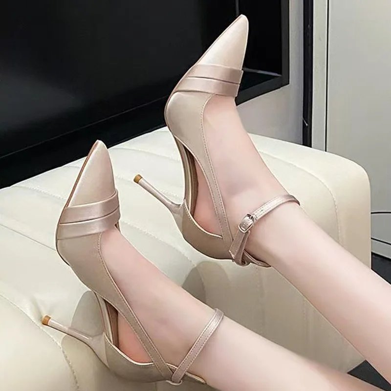 New York’s Fashion Sexy Purple Satin High Heels Pumps for Women 2025 Summer Ankle Strap Thin Heeled Ladies Shoes Pointed Toe Party Wedding Shoes