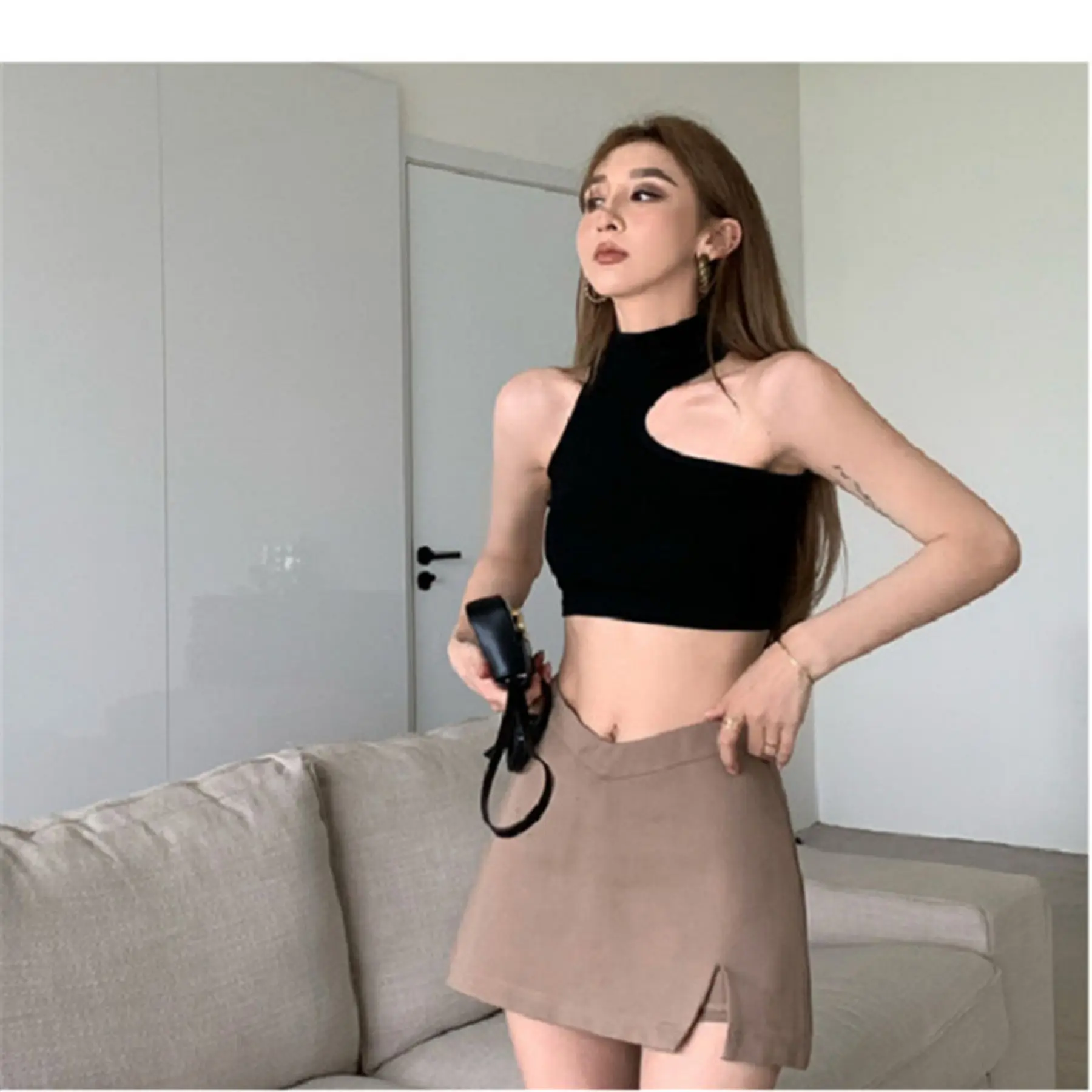 Sexy women Summer Hollow crop tops halter sleepveless tops slim fit summer casual solid color backless crop tube tops streetwear