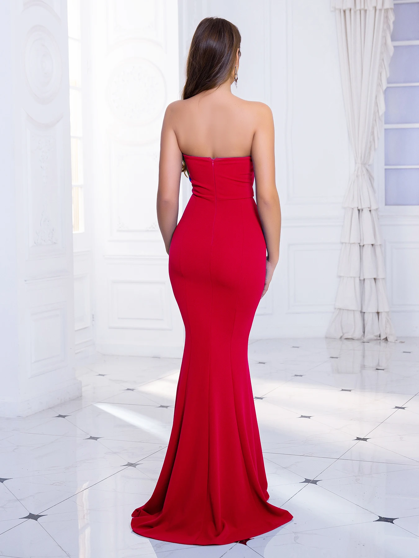 New York’s Fashion Strapless Long Evening Dress Sleeveless Backless Floor Length Slim Fit Bridesmaid Wedding Party Prom Gown Red Blue