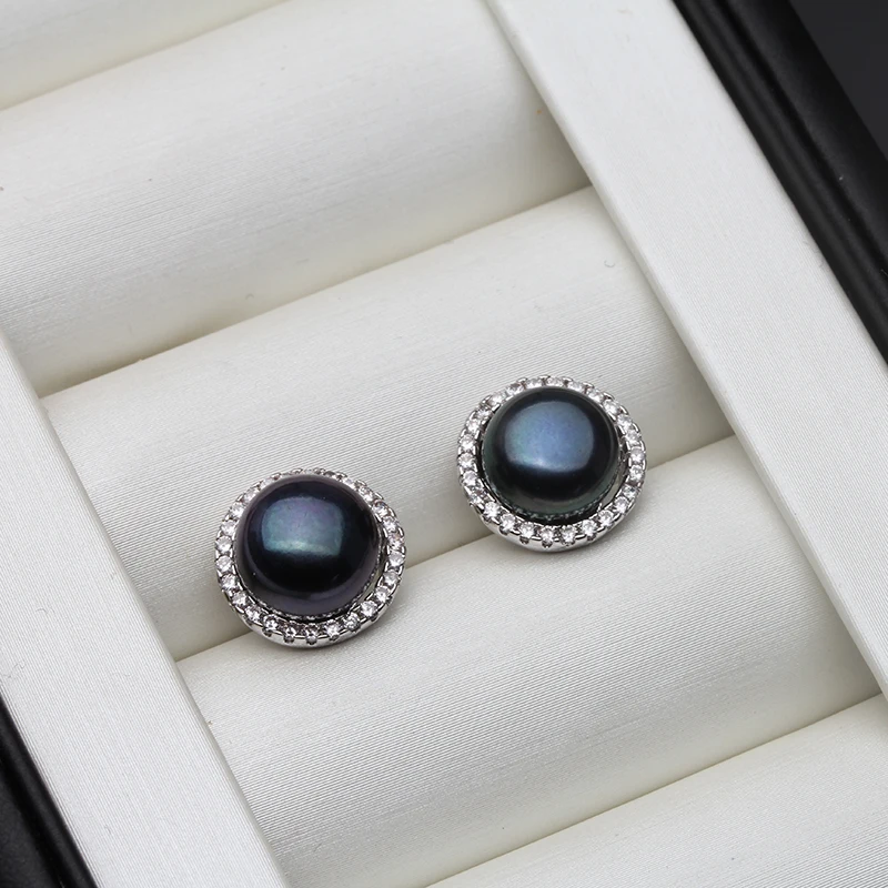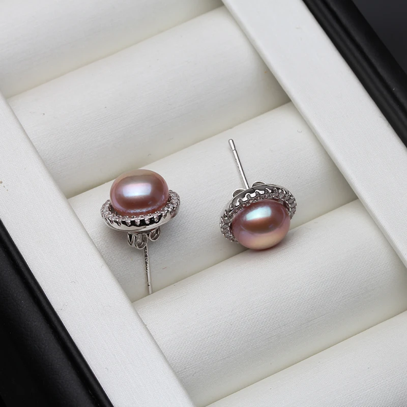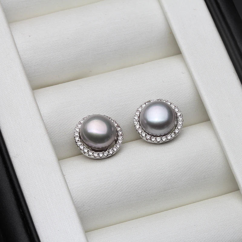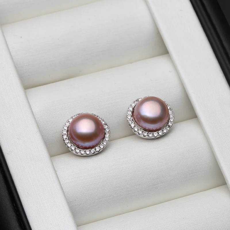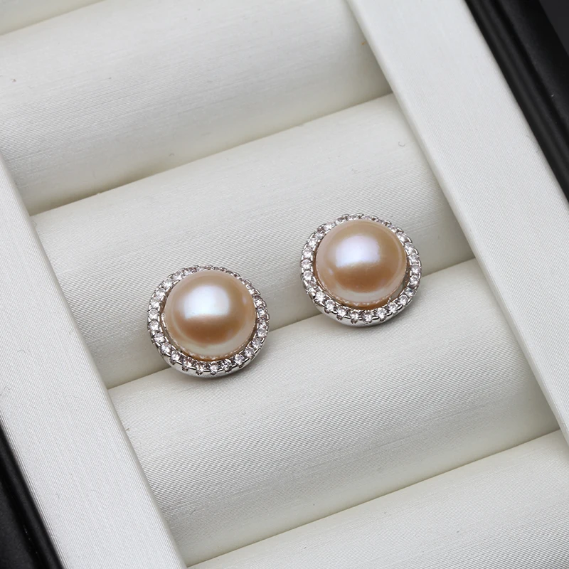 New York’s Fashion Wedding Natural White Freshwater Pearl Earrings 925 Silver Women,Fashion Cute Bridal Round Earrings Fine Jewelry Party Gift