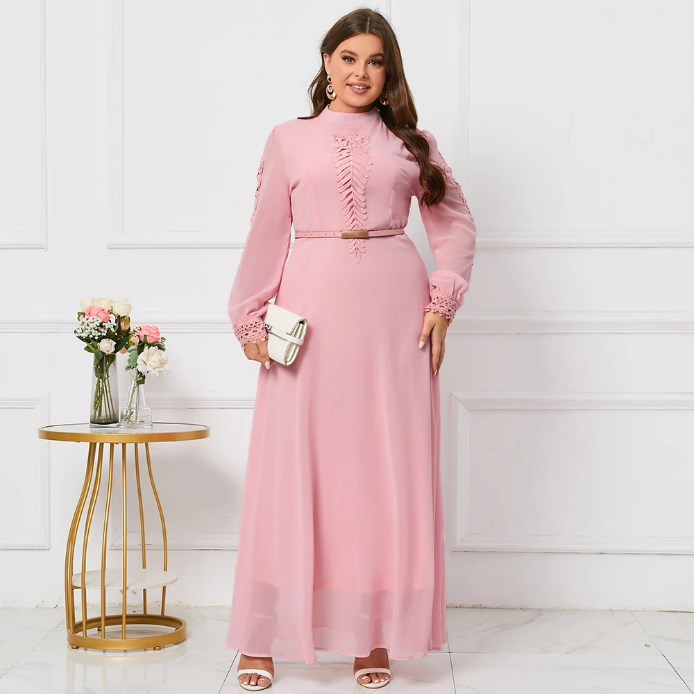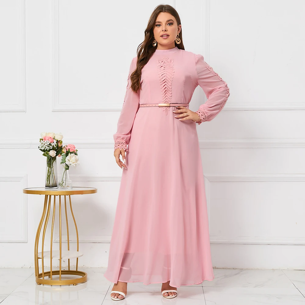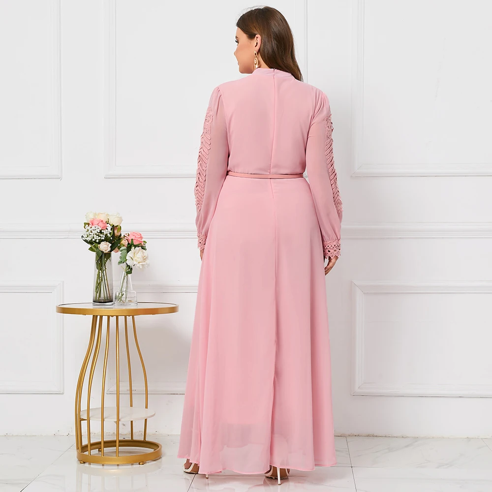 New Yorks Fashion Wome Pink Color Chiffon Long Party Dress