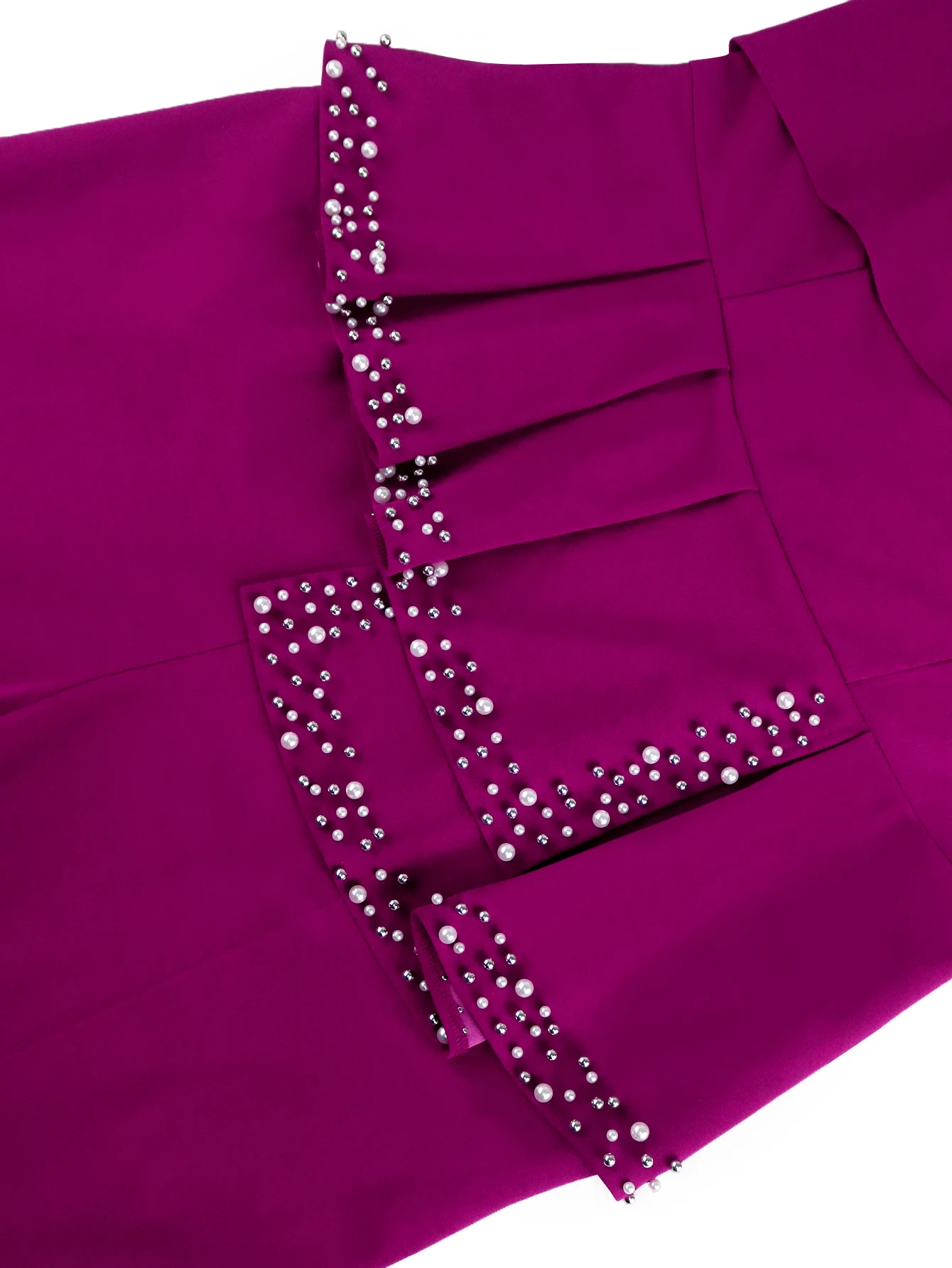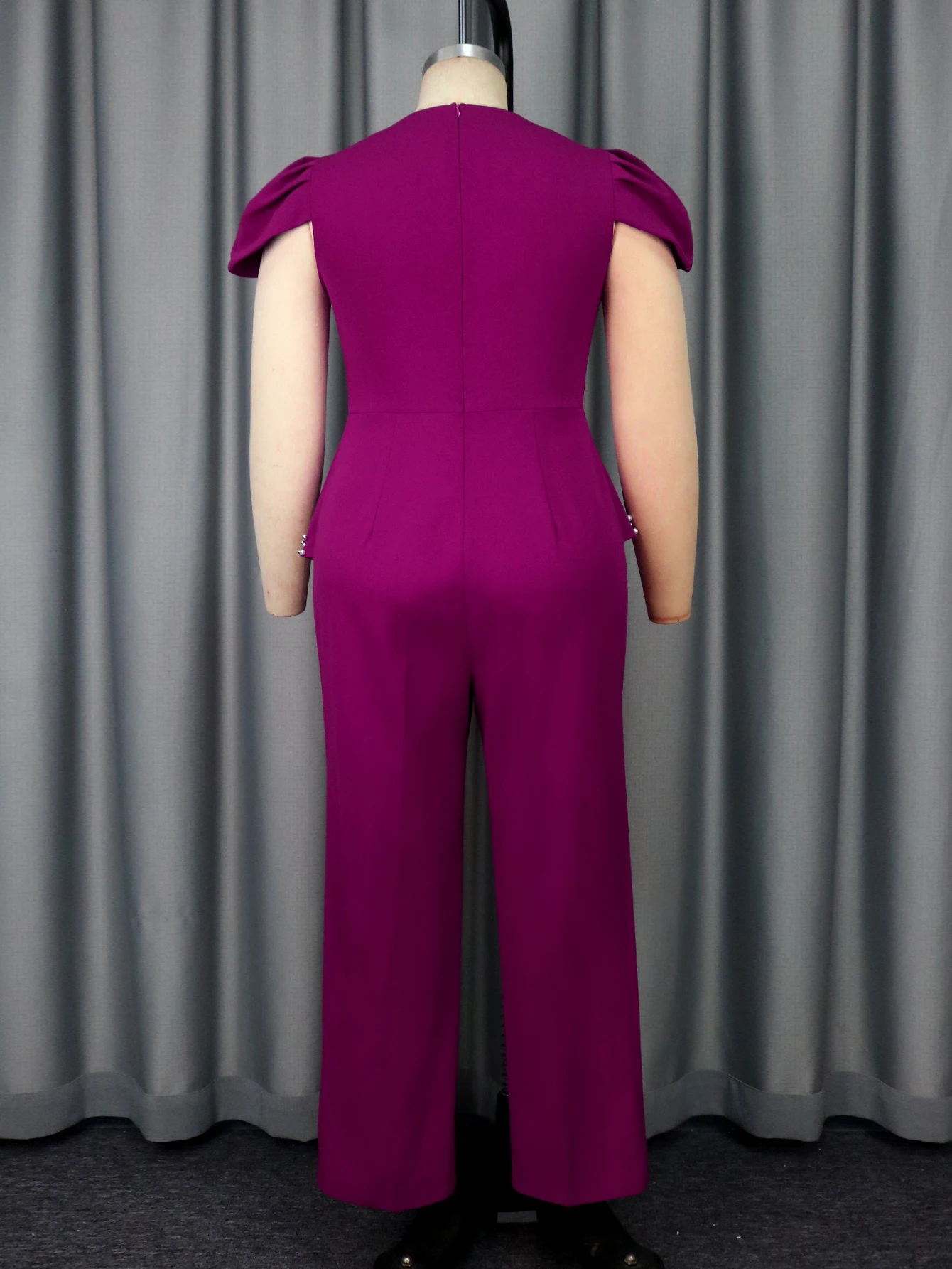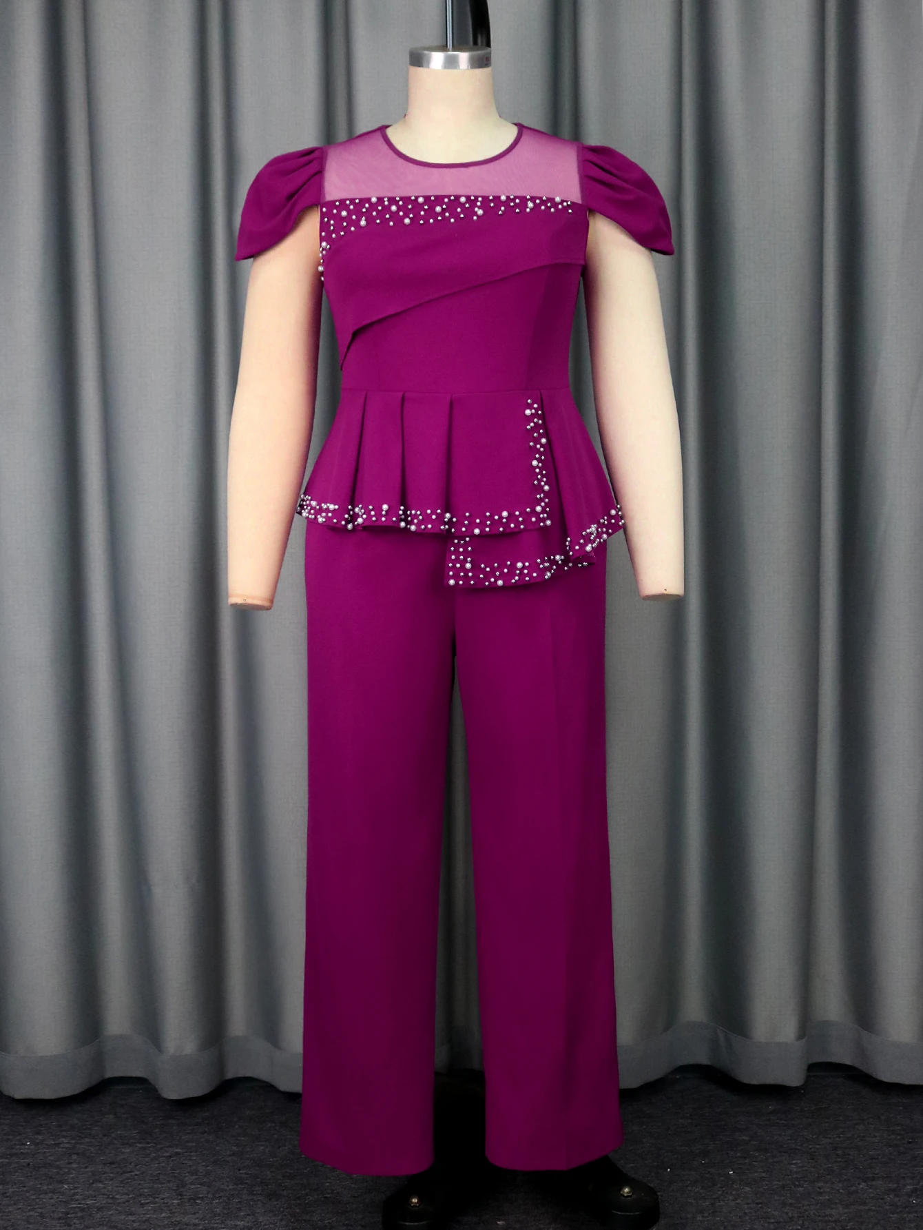 New York’s Fashion Women Elegant Beaded Jumpsuit O Neck Short Puff Sleeve Peplum Belly Cover Patchwork Tulle Evening Party Birthday Stylish Outfit