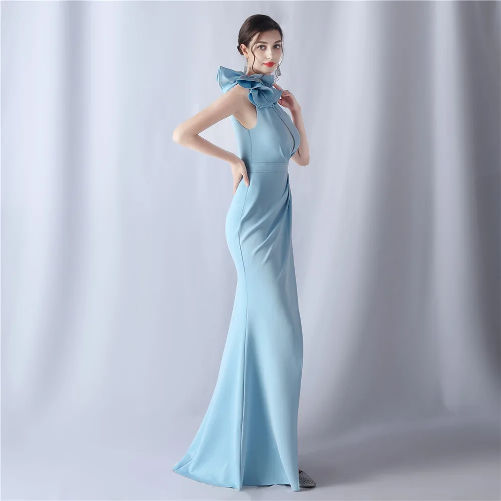 New Yorks Fashion Women One Shoulder Evening Dress Ruffles Celebrity Maxi Dress Sexy Slash Neck Long Party Dress