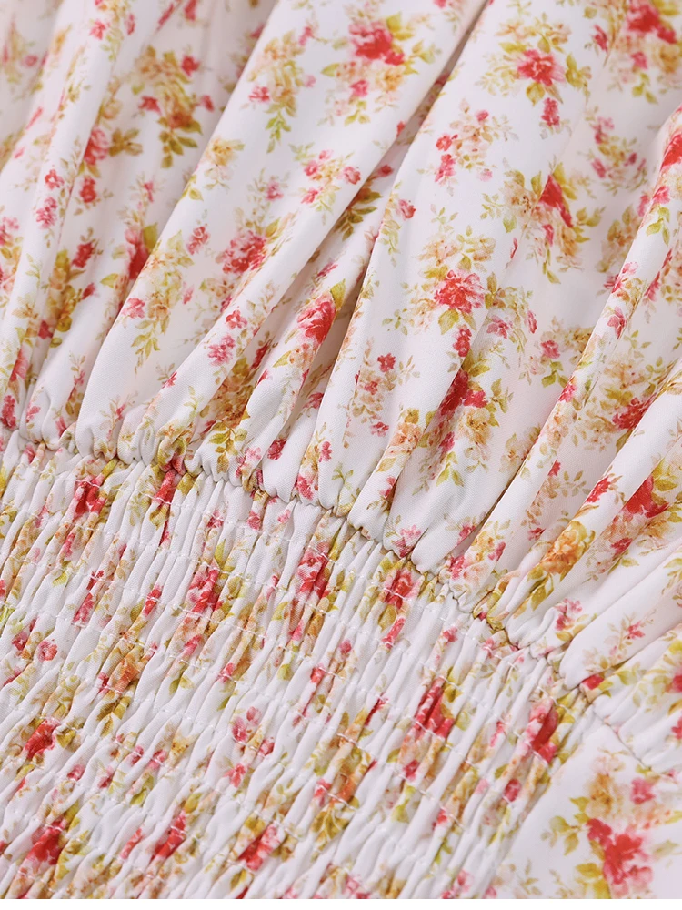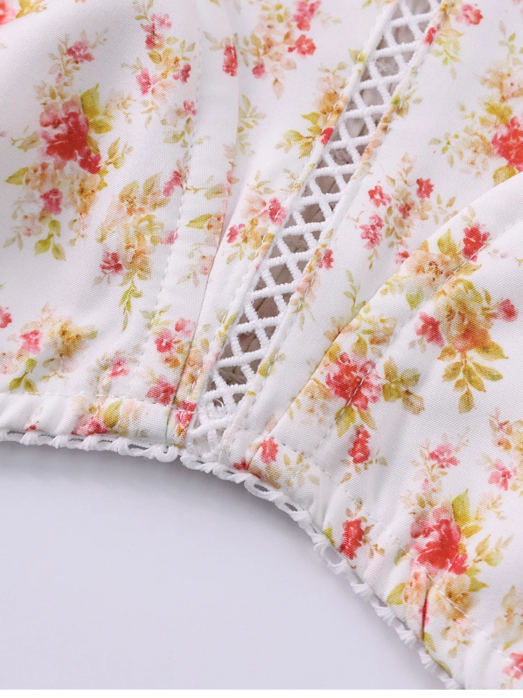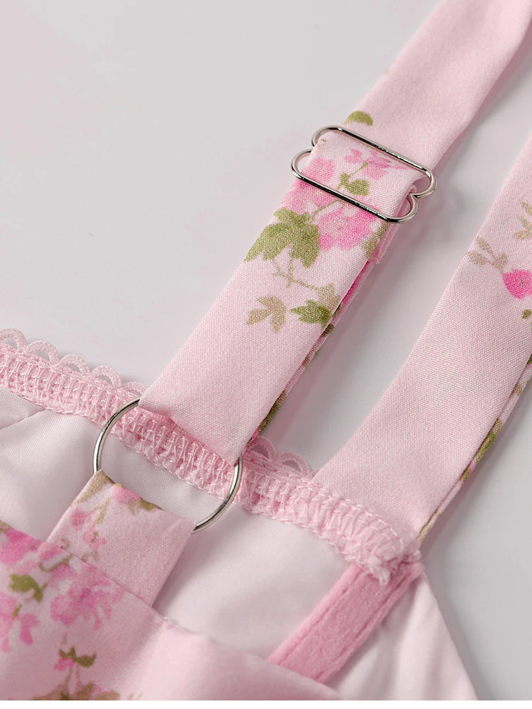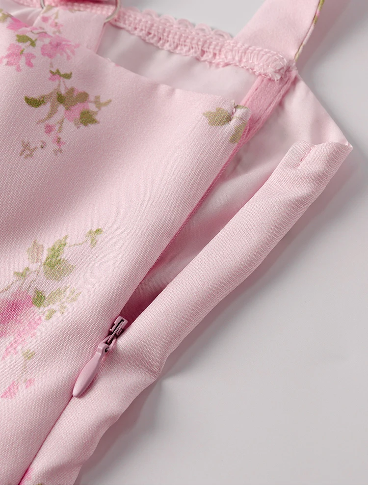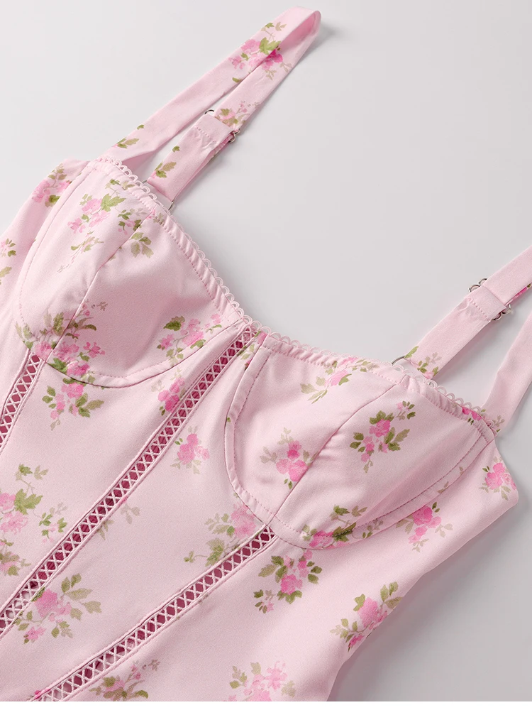 New York’s Fashion Women’s Floral Print Strap A-Line Sexy High Slit Midi Dress Backless Delicate Cutouts Summer Party Beach Holiday Dress