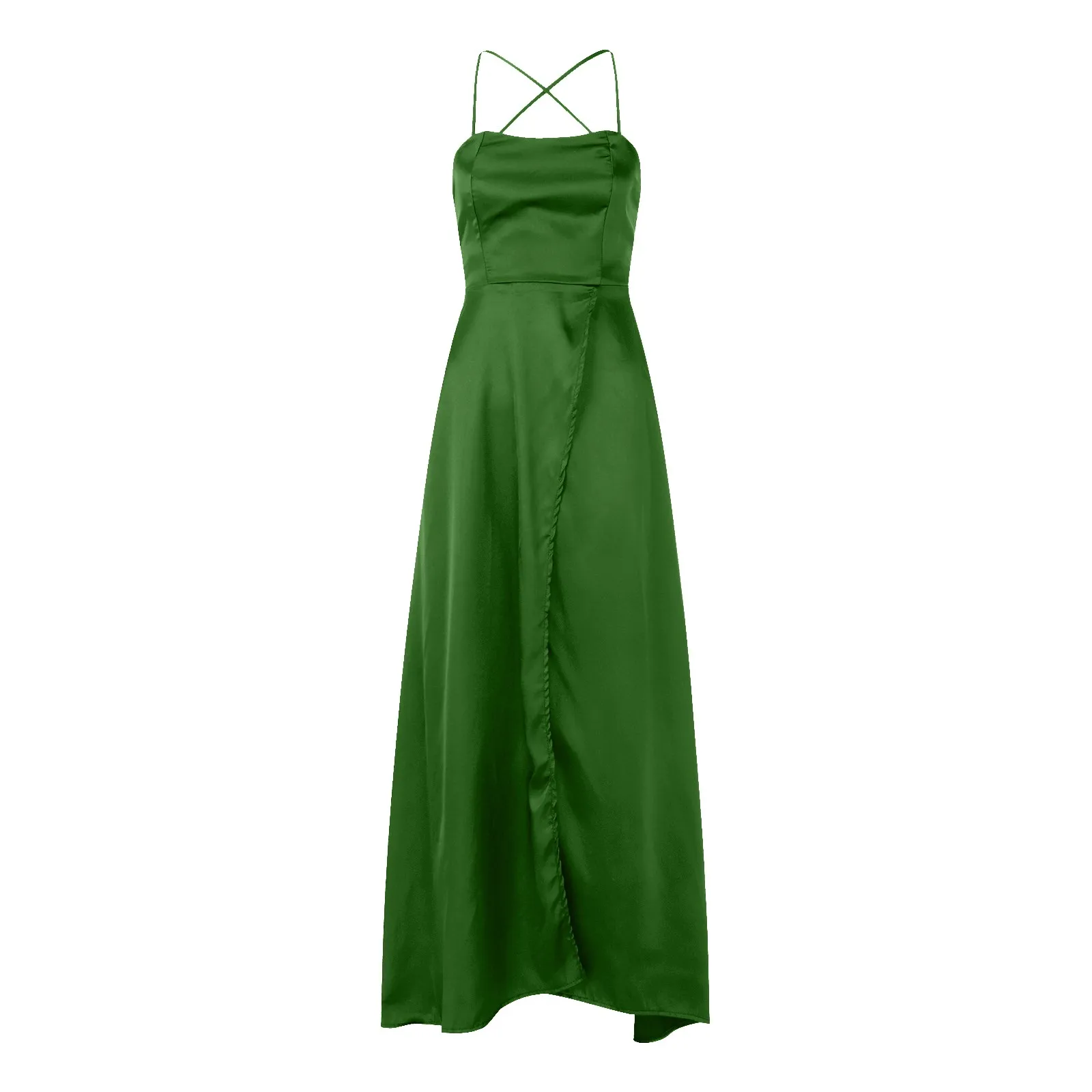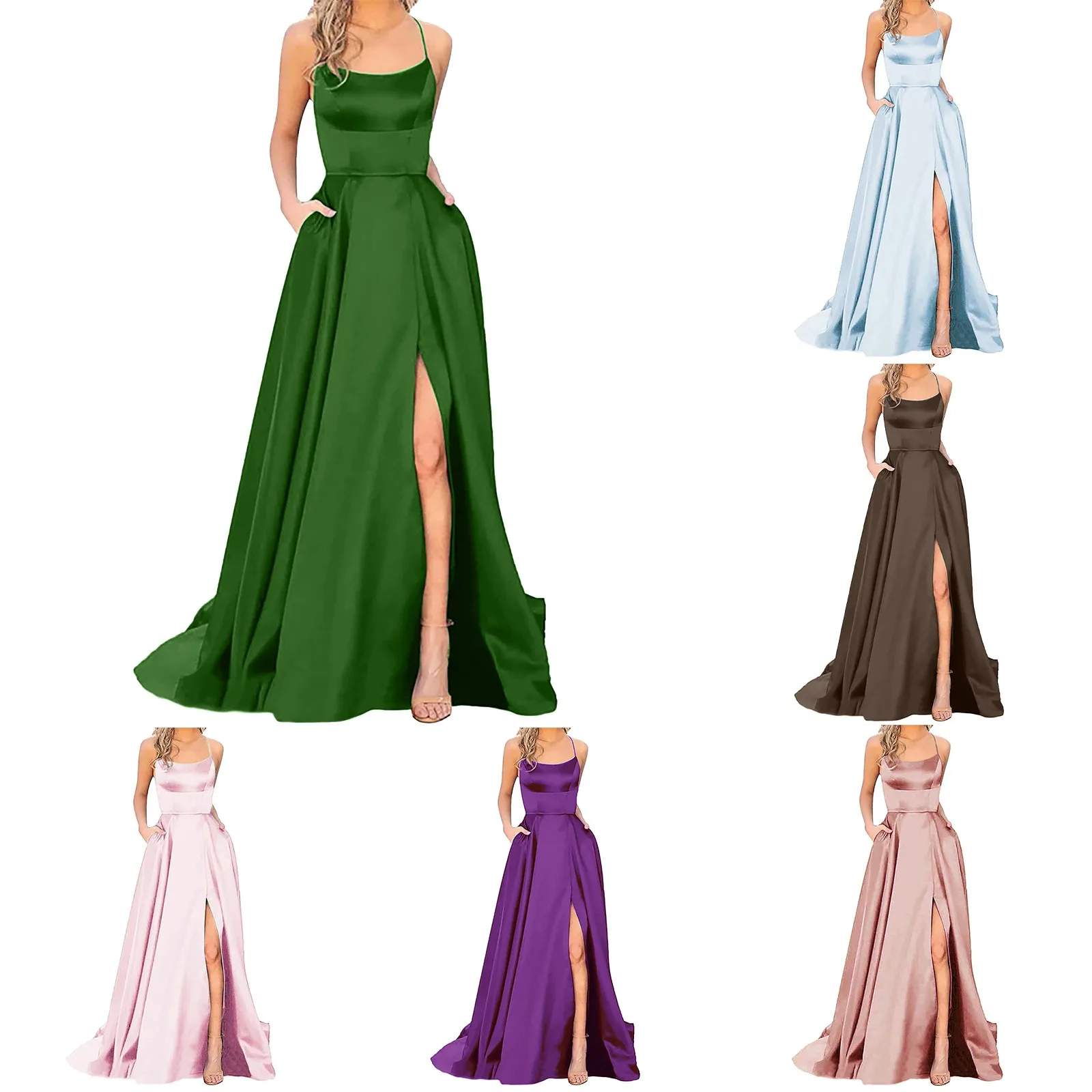 Newyorks Fashion Women Wedding Evening Party Dress With Pockets Elegant Halter Backless Crisn Satin Spaghetti Party Prom Dresses Side Slit Cloth